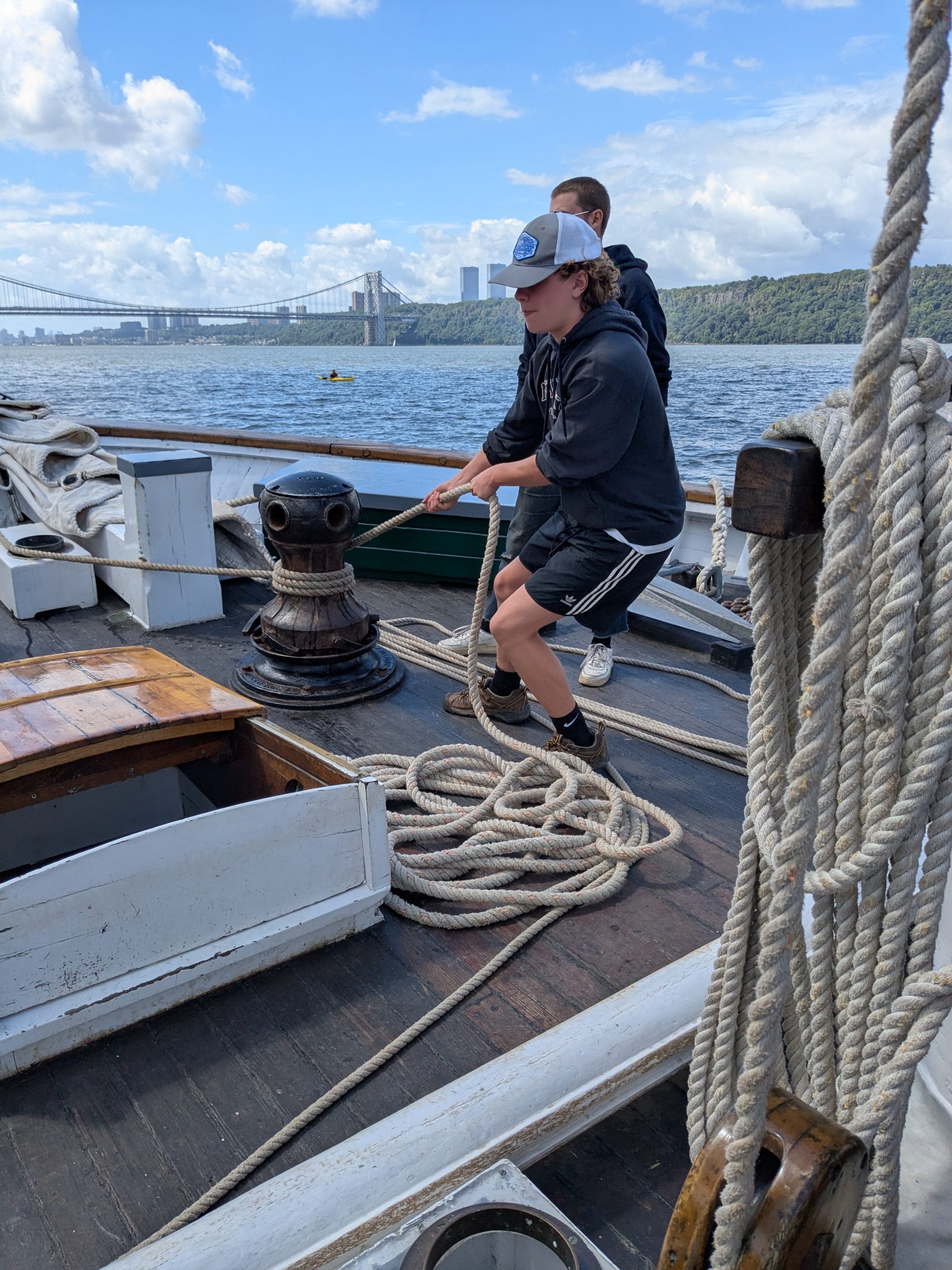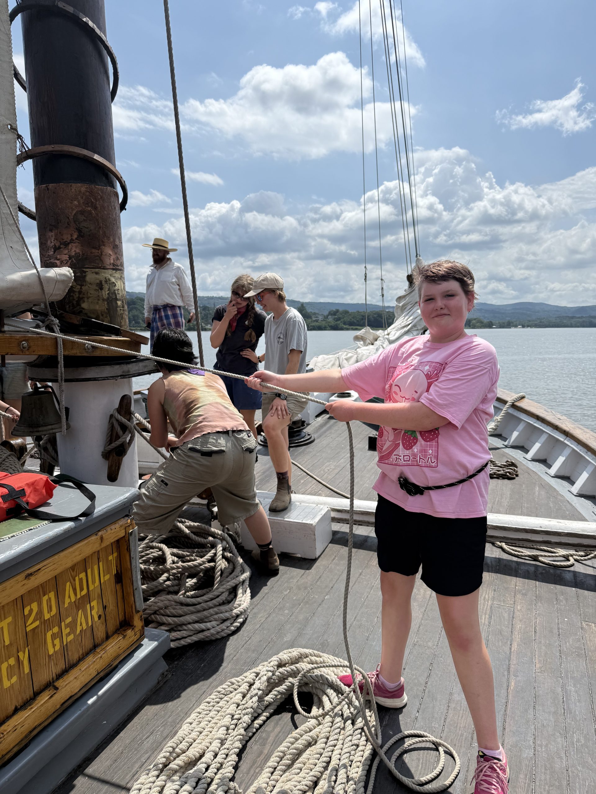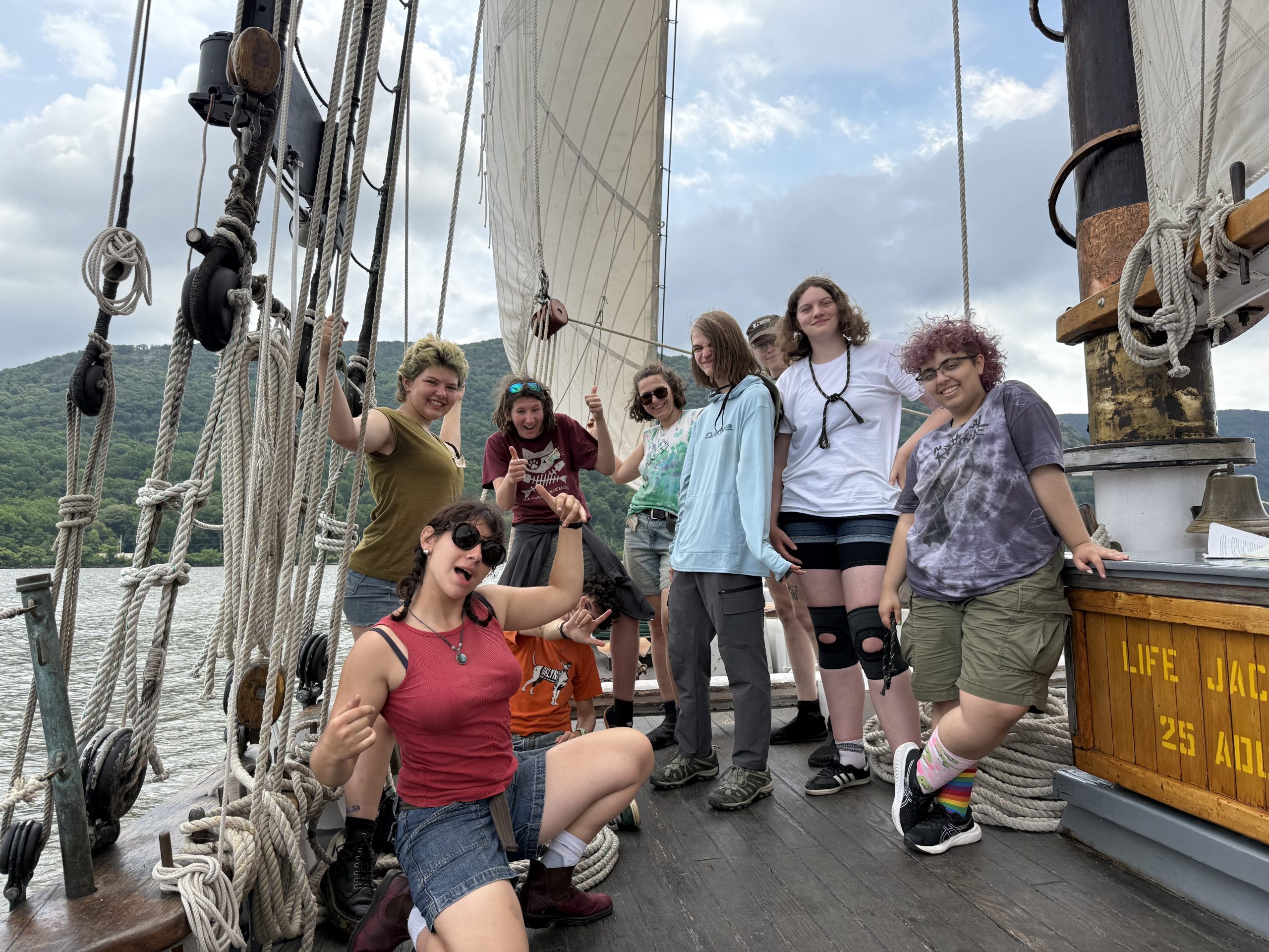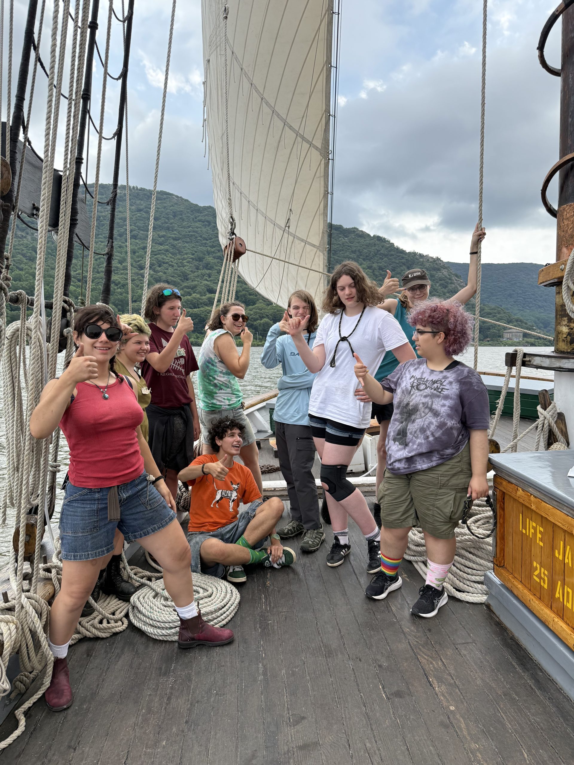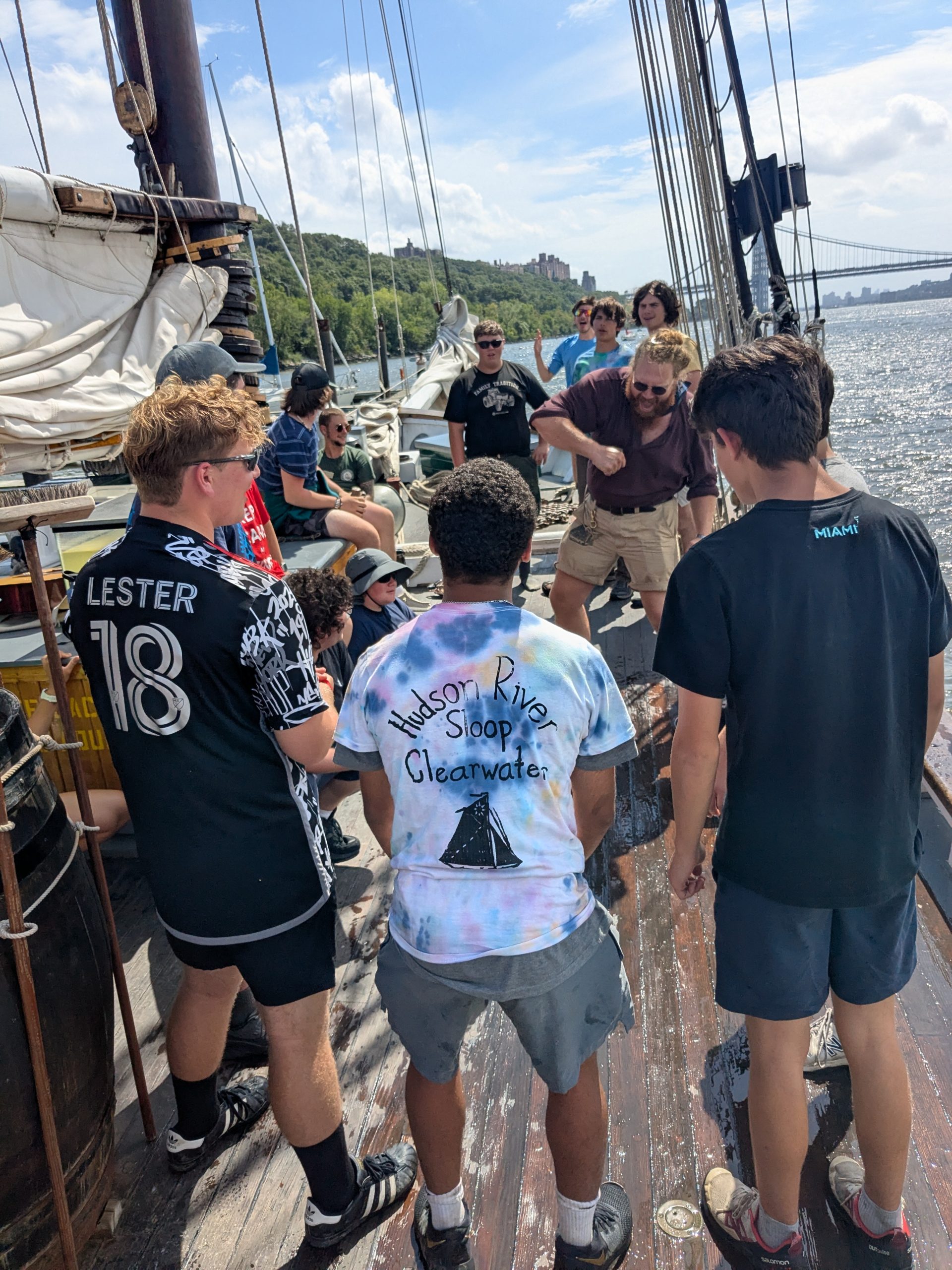Participants are immersed in leadership opportunities through a range of physical and academic activities, both in small groups and as a larger team. An intimacy with the river develops as they test the water quality, catch fish, navigate the ship, and help sail. Two nights are spent camping on shore, meeting with guest speakers, and relaxing alongside the beautiful Hudson River. Many past participants have later returned to the boat as volunteers and crew members.